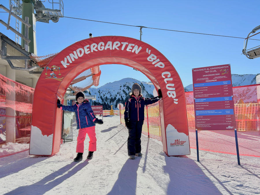 Ecco qua un bel parco giochi sulla neve a Pampeago, in Val di Fiemme, a circa 10 minuti di macchina da Tesero. Siamo a 2000 metri di altitudine, sulle bellissime piste da sci dello Ski Center Latemar. Il Bip Club si raggiunge facilmente con la nuovissima cabinovia a 10 posti Latemar: una bella comodità se volete portare anche i passeggini in quota! L’area si trova presso il campo scuola ed è aperta tutti i giorni dal 18 dicembre 2025.