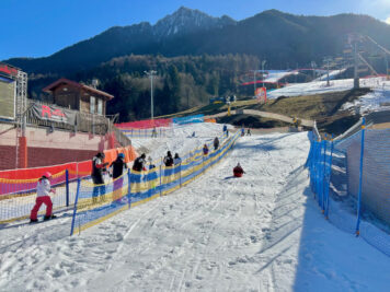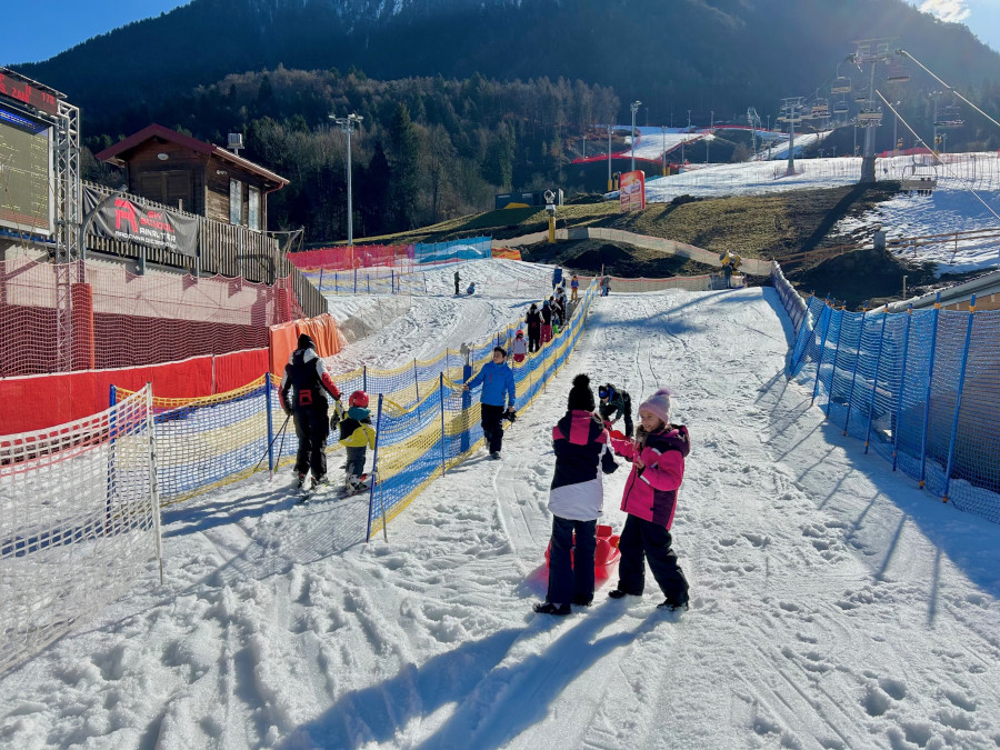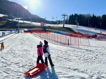 Di fianco troviamo il campo scuola dove iniziare a muovere i primi passi sugli sci: due piste adatte agli sciatori ancora in erba, una con una lieve pendenza. Anche qui due tapis roulant che aiutano nella risalita. Un ambiente ideale per imparare a sciare in sicurezza e con grande divertimento sia in autonomia che con i maestri della scuola di sci Rainalter. Noi ci siamo affiati alla maestra Erika per un’ora di lezione privata. Ed è stata un’esperienza molto positiva!