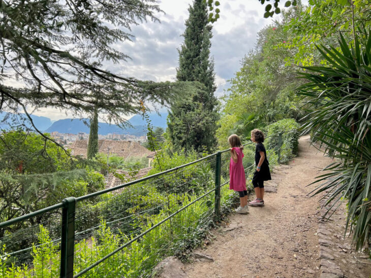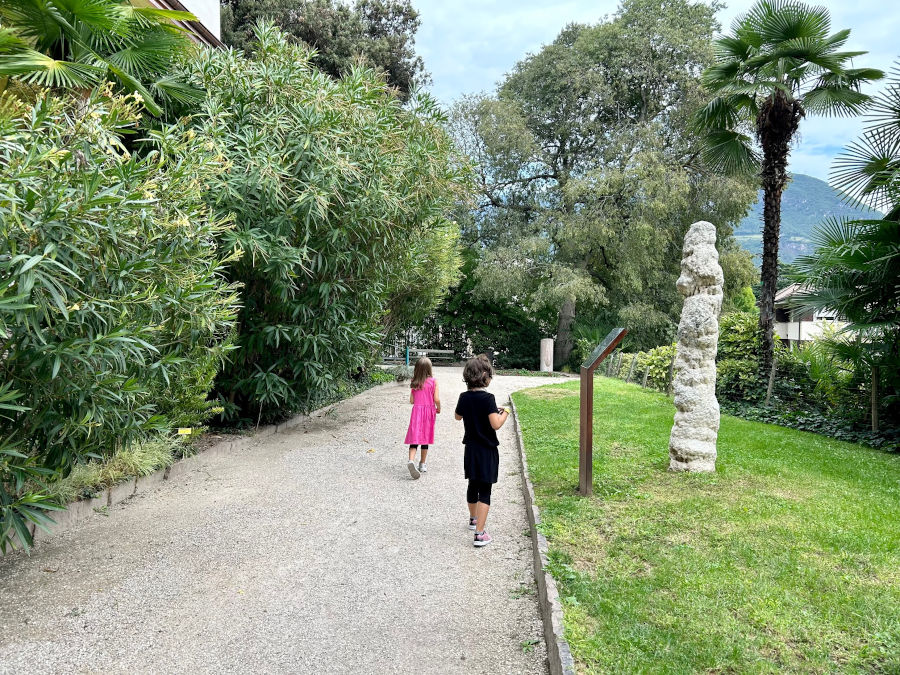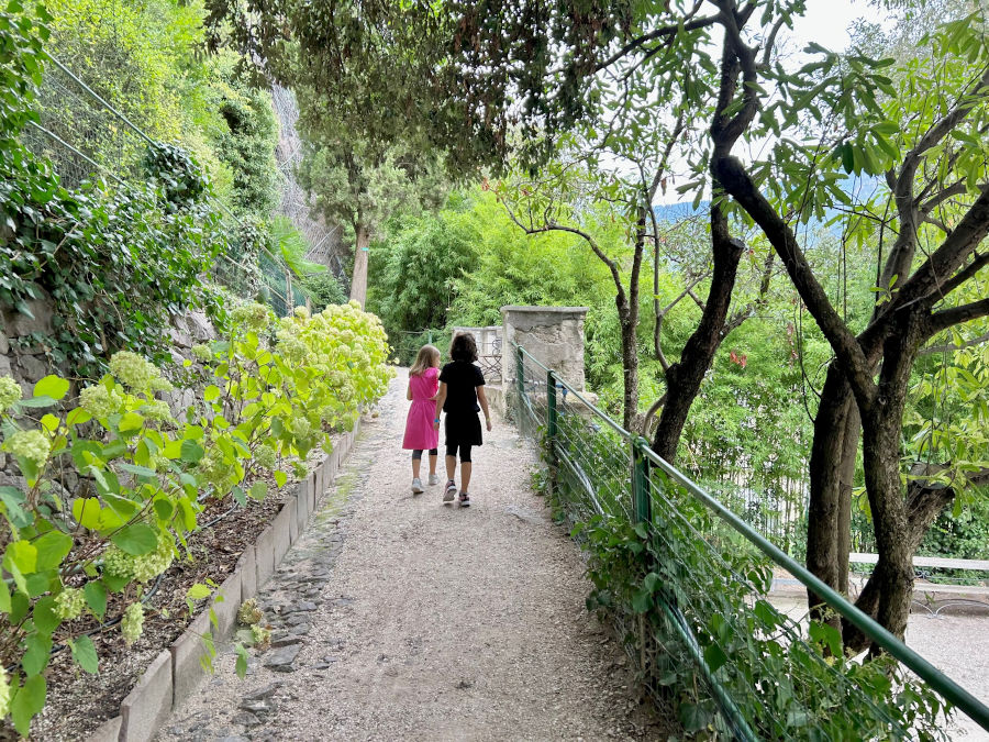 Dalla chiesa si sale lungo un sentiero a serpentina circondato da una fitta vegetazione mediterranea. Palme, fichi d’India, agavi, oleandri, magnolie, cipressi e cedri: la presenza di queste piante va fatta risalire proprio ai tempi nella nobiltà austro-ungarica, che aveva una vera passione per la creazione di giardini particolari.