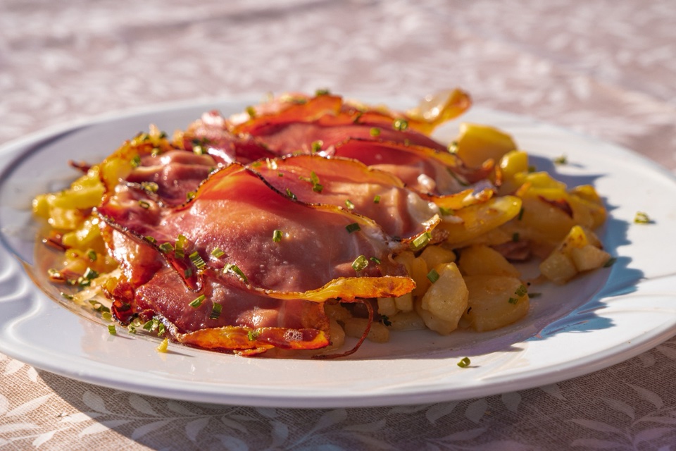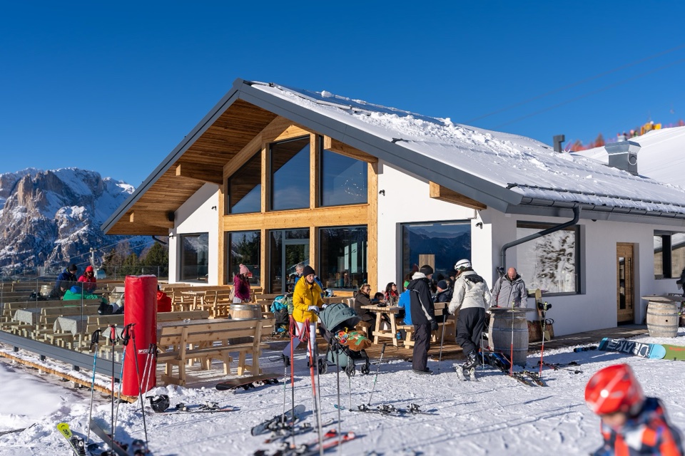 Conclusa la lezione, abbiamo recuperato le energie mangiando uno degli ottimi piatti tipici del nuovissimo Chalet La Bolp (tel. 349.8028523), che offre ampi spazi sia all’interno, dietro vetrate super panoramiche, sia sulla soleggiata terrazza. Questo è anche un buon posto per fermarvi ad aspettare i bambini mentre finiscono le loro lezioni al campo scuola.
