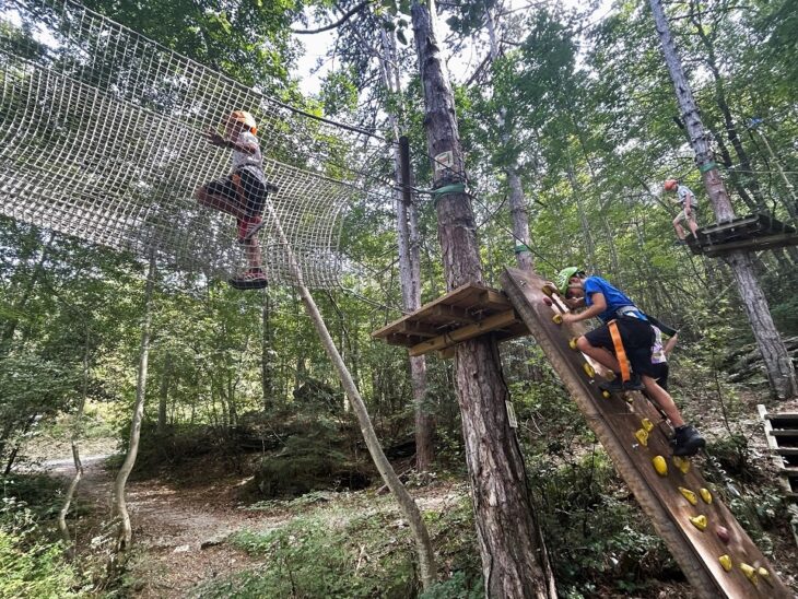 Cinque sono i percorsi aerei, per un totale di oltre 50 piattaforme posizionate sugli alberi ad altezze comprese tra i 2 ed i 15 metri e collegate fra loro da ponti tibetani, liane, carrucole. Una vera e propria avventura nel verde!