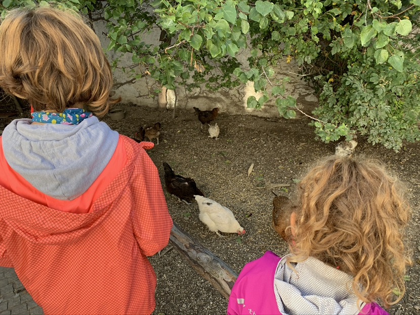La strada che porta al camping è fattibile con ogni mezzo (noi ci siamo arrivati comodamente con i nostri 12 metri di ingombro) e appena entrati, mentre io mi occupavo della burocrazia in reception, le bambine hanno stretto amicizia con una famiglia di porcellini d’india. Sempre attorno all’edificio principale ci sono il pollaio con gallinelle che scorrazzano all’aperto e le stalle con cavalli e asini, i quali, ad orari prestabiliti, vengono accompagnati con l’aiuto dai bambini, dai proprietari, in un prato poco distante.