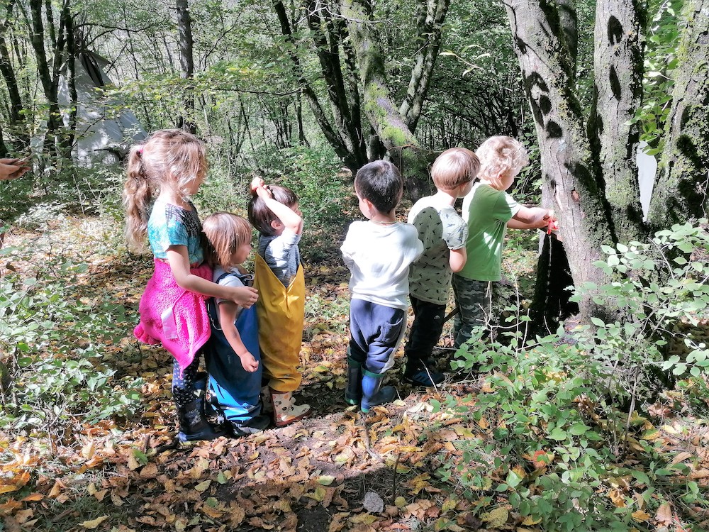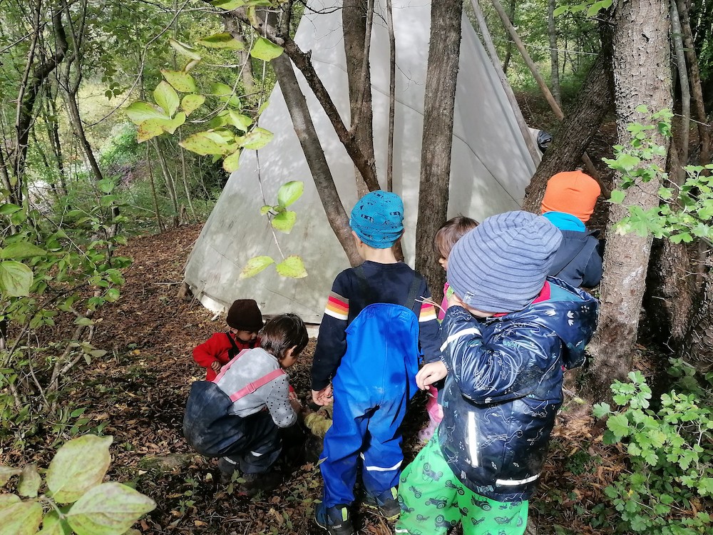 EDUCARE NEL BOSCO – Si tratta di un laboratorio permanente in Natura per bambine e bambini dai 3 ai 6 anni. I bambini trascorrono all’aperto, nel bosco, 10 mesi all’anno, da settembre a giugno. Tutti i giorni vivono vere e proprie avventure educative affiancati da adulti attenti che si pongono come osservatori e accompagnatori nel loro processo di crescita. L’adulto, nella relazione, accompagna il bambino nel proprio processo di sperimentazione e autonomia, di conoscenza di se stesso e nella relazione con i pari. Questo avviene rispettando i ritmi, i modi e i bisogni di ciascun bimbo. Il bosco e il selvatico danno limiti e libertà ai corpi, garantiscono ricchezza e sfumature che colorano la Natura ogni giorno in modo differente. I bambini e le bambini seguono il ritmo delle stagioni e fanno esperienza diretta delle diverse condizioni metereologiche sempre all’aperto a contatto con la Natura. Le aule dove avvengono questi processi di apprendimento hanno i tronchi degli alberi come pareti, il soffitto è il cielo e non ci sono porte o finestre.