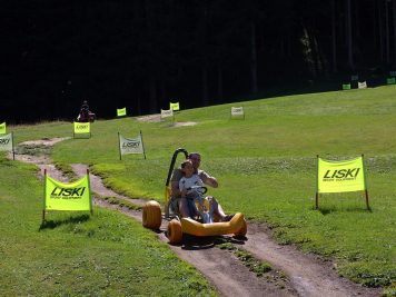 E, il pezzo forte del parco… gli spassosissimi kart su erba SLALOMKART