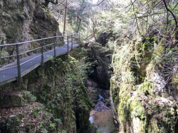 Il canyon del Rio Sass, incanta con la sua maestosità, il rumore dell’acqua che scava la roccia è quasi assordante e non si può fare a meno di osservarla in un silenzio ammirato.