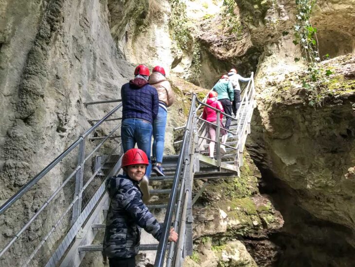 Il ritrovo per la visita al canyon presso il municipio di Fondo (dove ha sede la “Cooperativa Smeraldo“) una decina di minuti prima della partenza. Il tempo di fare i biglietti e poi via, all’avventura! La visita dura circa due ore (2,5 chilometri, 600 scalini per un dislivello di circa 145 metri). L’escursione non è complicata anche se un minimo di allenamento è consigliabile almeno per i bambini.