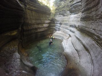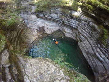Bello poter scoprire angoli spettacolari inaccessibili a piedi, in un susseguirsi di sorprese naturali una dopo l’altra in questa forra selvaggia ed affascinante con pozze, cascate, scivoli e salti d’acqua. Emozionante l’arrivo con vista spettacolare sul lago Noana,bacino artificiale ad uso idroelettrico.