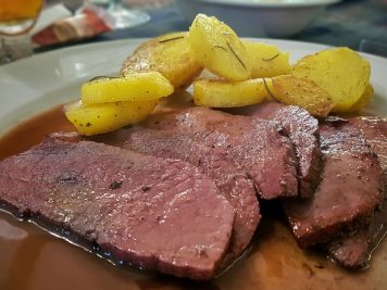 Il rifugio propone una cucina tipica e casereccia, in un locale dall’arredamento rustico. Ci sono piaciuti molto i primi piatti, in particolare le tagliatelle con le finferle, buoni anche i canederli. Come secondo invece abbiamo provato la carne salada con le patate.