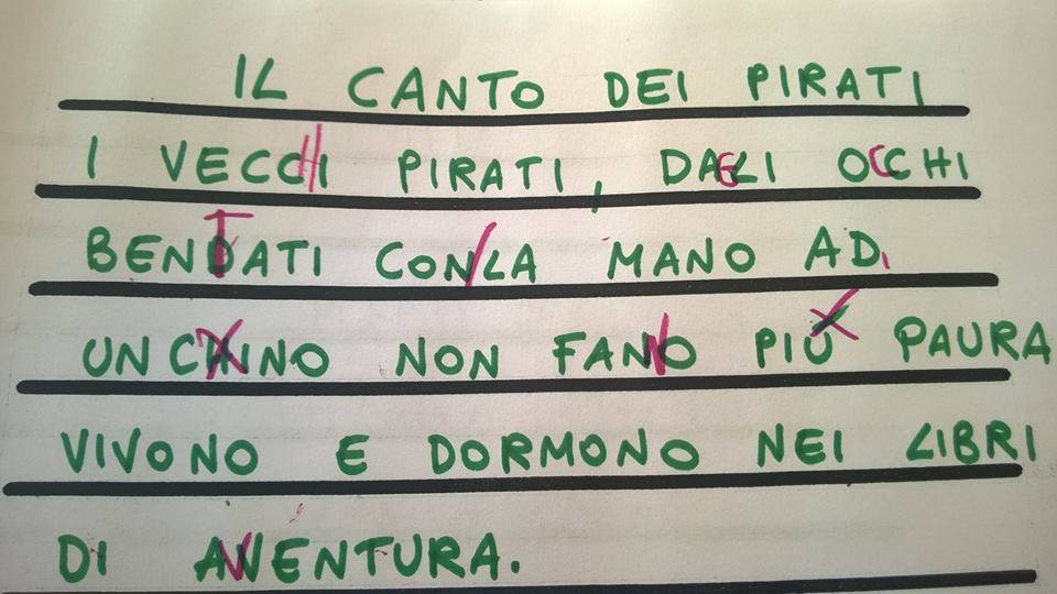 Ma anche noi adulti, da buoni pirati, impariamo a chiudere un occhio se vediamo spesso certi tipi di errori. Difficilmente un ragazzino con disortografia si accorge dell’errore commesso e l‘aiuto più grande proviene da se stesso, da una rilettura guidata, una consapevolezza della complicazione del sistema di scrittura. Ora, grazie al computer, hanno la possibilità di accorgersi velocemente dell’errore vedendo la serpentina rossa e il suggerimento del PC ma questo deve diventare un aiuto importante e non la completa sostituzione della scrittura che, al pari della lettura, deve rimane un piacere e non una tortura!