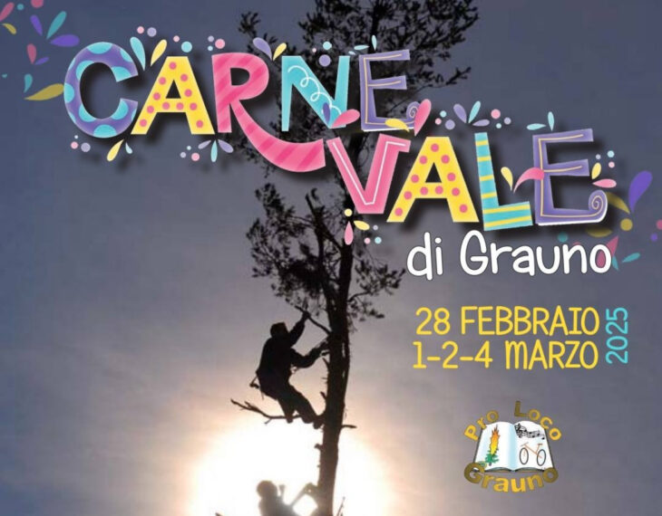 Il Carnevale di Grauno, piccolo paese della Val di Cembra, è tra i più longevi e caratteristici del Trentino. A far da padrona c’è la cerimonia del “rogo del pino”, un antico rituale di propiziazione. La tradizione vuole infatti che martedì Grasso un pino venga portato nella piazza principale del paese per essere battezzato dall’ultimo sposo dell’anno, che adempie a questo compito intingendone un rametto nel vino. Quest’anno le date del Carnevale di Grauno in calendario sono: 28 febbraio, 1, 2 e 4 marzo 2025.