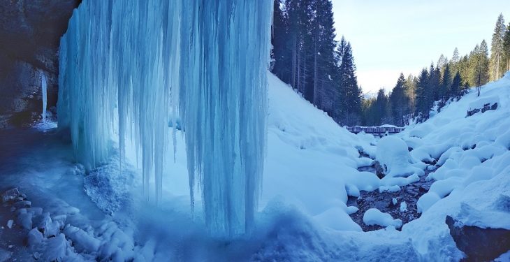 Tra le cascate più affascinanti da ammirare in inverno in Trentino ci sono sicuramente le cascate di Vallesinella. Queste cascate sono situate a breve distanza da Madonna di Campiglio. Noi le abbiamo raggiunte attraverso un’escursione di un paio d’ore, ma con i bambini mettete in preventivo una mezz’oretta in più.