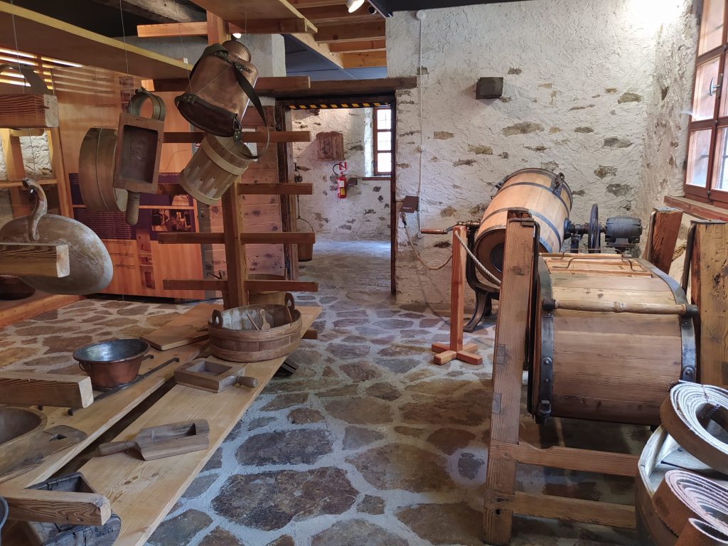 Della prima sala colpisce soprattutto il grande camino con i calderoni utilizzati per riscaldare il latte, mentre nella seconda sala sono esposti oltre 100 oggetti utilizzati per la lavorazione del latte, dai diversi tipi di zangole, passando per mestoli e colini, ai vari stampi. Gran parte di questi oggetti sono in legno ed sono stati realizzati a mano, a volte anche intarsiati, come nel caso degli stampi per il burro.