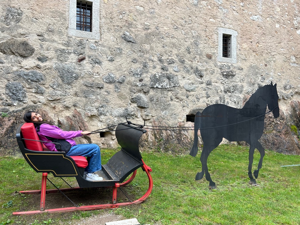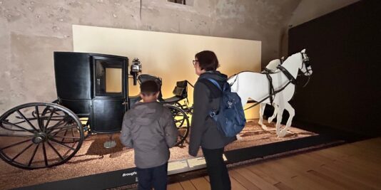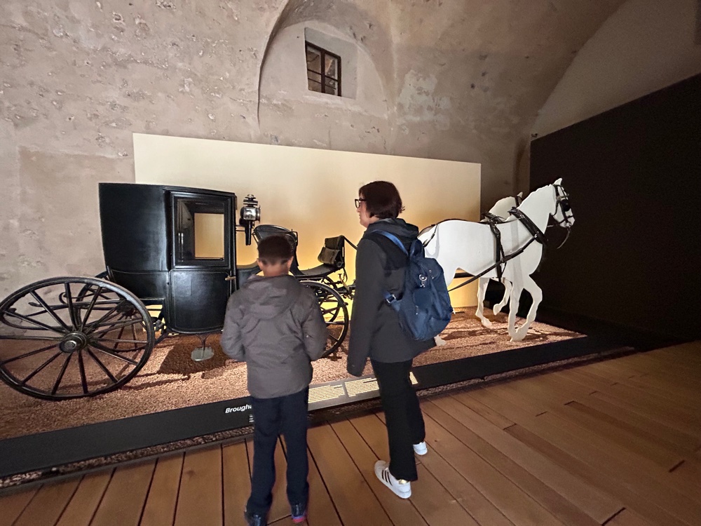 Molto carina la galleria delle carrozze, ricavata nelle antiche scuderie del castello. Qui sono esposti diversi tipi di carrozze. Ci sono anche pannelli interattivi attraverso i quali imparare i nomi delle parti della carrozza e tanto altro ancora. All’esterno potrete anche scattarvi una foto su una vera carrozza!