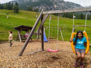 Per concludere la giornata si può spingersi fino al vicino Lech de Sompunt, situato a 1460: un meraviglioso piccolo specchio d’acqua smeraldo in cui si specchia il Sass de la Crusc (Sasso di Santa Croce). Si può raggiungere in auto in un paio di minuti o con una bella passeggiata. Lassù troverete un ristorante e un parco giochi con animali per la gioia dei bambini.