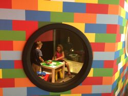 Un’ottima gelateria, uno spazio giochi libero per bambini con Lego (possibilità anche di acquisto) e una divertente “tana” con le palline colorate. E in più un’ ampia terrazza esterna dove correre e divertirsi (sotto gli occhi dei genitori, seduti ai tavolini) in sicurezza, perché lontano dal traffico: cosa chiedere di più ad una caffetteria/gelateria?