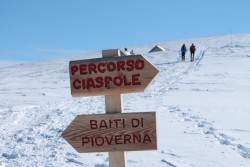 Arrivate a Passo Coe (6 chilometri da Folgaria, 1600 metri circa di altitudine), paradiso per chi fa sci di fondo con 35 chilometri di piste, e parcheggiate la macchina (a pagamento, 60 centesimi l’ora). Dovete salire sulla collinetta che c’è alle spalle del negozio di noleggio sci (scritta gigante, non potete sbagliare), accanto al tappeto mobile per gli sciatori, e attraversare con attenzione la pista. Dopodiché è tutto indicato e il sentiero battuto (ma con le ultime abbondanti nevicate le ciaspole sono obbligatorie), con una prima parte totalmente piana, in una conca fuori dal mondo. Questa è una passeggiata (45 minuti in totale, anche meno) da fare con bambini abituati a camminare, perché nell’ultima parte (15 minuti circa) si affrontano tutti i 150 metri di dislivello. Una salita abbastanza ripida, niente di più, che però ripaga la fatica con un panorama incredibile. Si vede il Lagorai, l’Adamello, la Presanella, le Dolomiti di Brenta, fino alla Marmolada e il Sassolungo. E poi lassù, vicino ai baiti di Pioverna, c’è davvero una quiete incredibile. Un posto dove fermarsi anche a mangiare o bere qualcosa, ammirando la splendida vista, oppure a giocare senza pensieri con la neve appena caduta (consigliato un cambio).