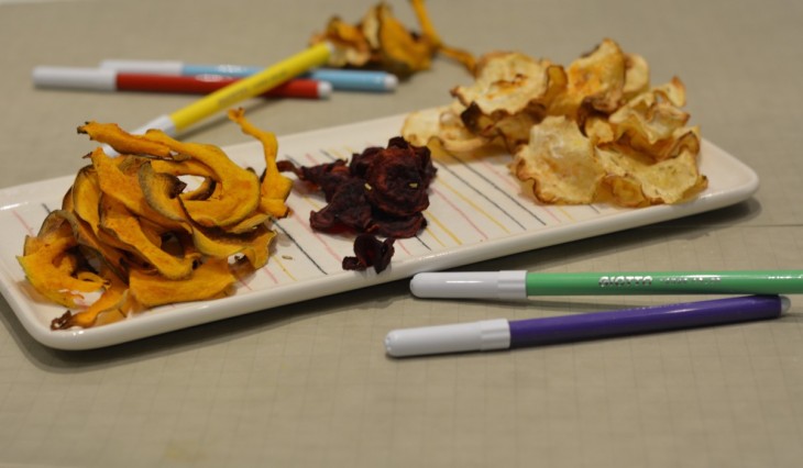 Questa è una super idea: bella, buona e sana! Se vi piacciono gli snack Antonella Iannone (del blog incucinapuoi.it) ha trovato un nuovo modo di concepirli: unire la genuinità con l’allegria. Si dice che ci voglia amore per cucinare bene, ma a questo punto direi che se ci sono di mezzo i bambini un pizzico di allegria non guasta. Ecco le CHIPS COLORATE di verdure: facili e veloci da realizzare, ma anche leggere perché cotte al forno! Mi pare che ci siano tutti i presupposti per passare anche i più duri dei test sulla genuinità ( di questi tempi poi..). La cosa bella è che questo è solo l’inizio: ci si può infatti sbizzarrire perché possono andar bene tutte le verdure che troviamo ora sui banchi del mercato e possono essere condite con spezie di ogni tipo, dandoci l’occasione di sperimentare nuovi gusti e aprire le porte a nuovi profumi, nuove consistenze e aromi anche ai nostri piccoli.