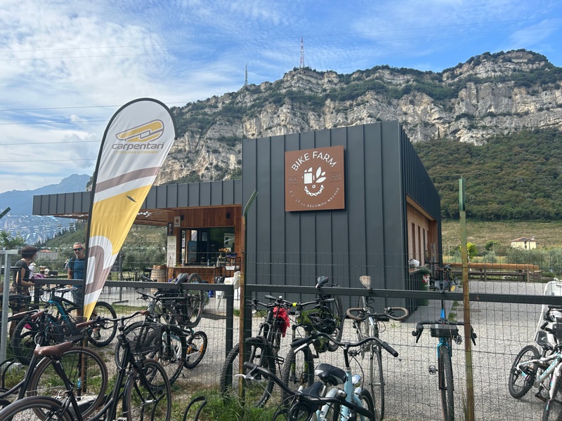 Un chilometro o poco più prima di arrivare a Torbole ( o al rientro) vi consigliamo una sosta al Bike Farm Linfano Bici Grill: una vera oasi nel verde con accesso diretto anche dalla pista ciclabile. Qui i grandi potranno rilassarsi sulle panche o sui pouf nell’ampio prato, gustare super deliziosi hamburger preparati con ingredienti di prima qualità e sorseggiare un buon drink o una birretta fresca.
