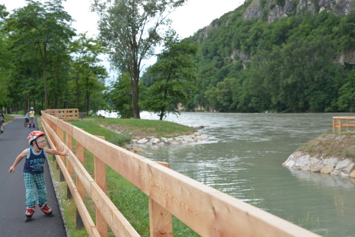 Finalmente ce l’abbiamo fatta anche noi a immergere i piedi nelle acque del rio che fa della ciclabile roveretana una delle più osannate del momento e, onestamente, è anche vero! Ok, oggi non era la giornata migliore diciamocelo: nuvoletta di Fantozzi al seguito siamo però riusciti a scorrazzare con roller e bici lungo il tratto del Navicello che ci ha davvero colpiti. Non solo bella la pista ciclabile che abbiamo potuto percorrere solo per un piccolo tratto, ma tutto ciò che la circonda è davvero un quid in più: percorso Kneipp con sassolini, panchine di legno, ponticello e naturalmente a pochi metri, sullo sfondo, le acque un po’ più tenebrose del fiume.