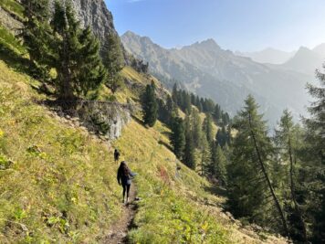 Qui è possibile rilassarsi sul prato o rifocillarsi con un ottimo pranzo tipico, circondati da un paesaggio idilliaco. Se siete a piedi o con lo zaino portabimbo, dopo aver ammirato le cascate ed esservi rinfrescati potete, come abbiamo fatto noi, imboccare, sotto la baita, il sentiero 641 che costeggia il rio san Nicolò, ed evitare così di rientrare sulla stessa strada dell’andata.