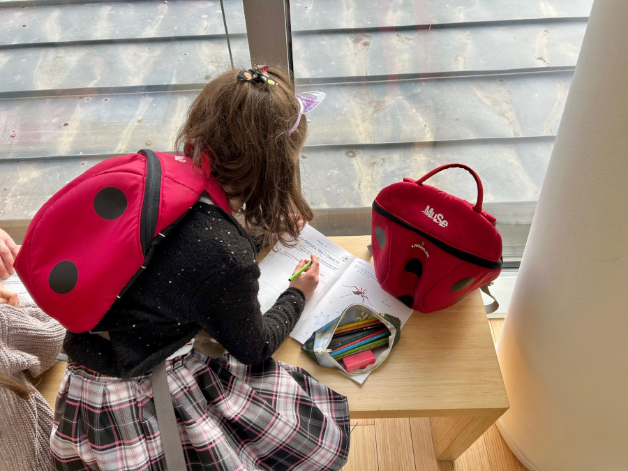 L’attività “museo con lo zainetto” consiste in una visita attiva e coinvolgente delle sale espositive del MUSE. All’interno del famoso zainetto i piccoli visitatori troveranno anche una guida di viaggio, con enigmi e giochi, per esplorare il museo scoprendo i principali argomenti che caratterizzano i diversi piani, stimolando così fantasia, creatività e voglia di sperimentare. Che trovata!
