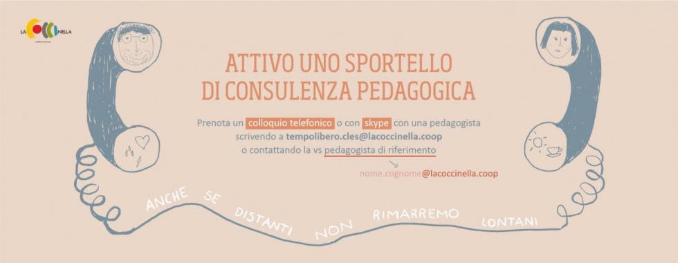 La cooperativa La Coccinella ha pensato di aprire uno sportello virtuale di consulenza pedagogica aperta a tutti e non solo ai suoi utenti già iscritti ai vari servizi (per questi funziona anche un rapporto di continuità con le figure di riferimento).