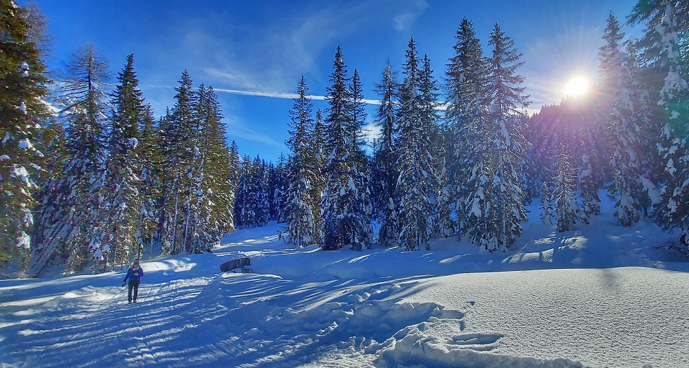Una passeggiata carina e soprattutto semplice nei dintorni di Passo Campo Carlo Magno. Circa due chilometri di saliscendi poco impegnativi, circondati dal magico paesaggio invernale, camminando accanto alla pista da fondo fino a Malga Mondifrà. Tutte le informazioni in Campiglio: neve a malga Mondifrà.