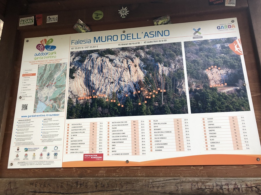Lungo la salita alla croce dei Colodri ci si può fermare ad arrampicare alla falesia Muro dell’Asino (clicca per scoprire di più), una piccola parete adatta anche per i bambini alle prime armi. E’ raggiungibile in una quindicina di minuti lungo il Sentiero SAT 431. A ridosso della falesia c’è un bel prato dove fermarsi per trascorrere qualche ora o fare un picnic (ci sono anche un paio di tavoli)