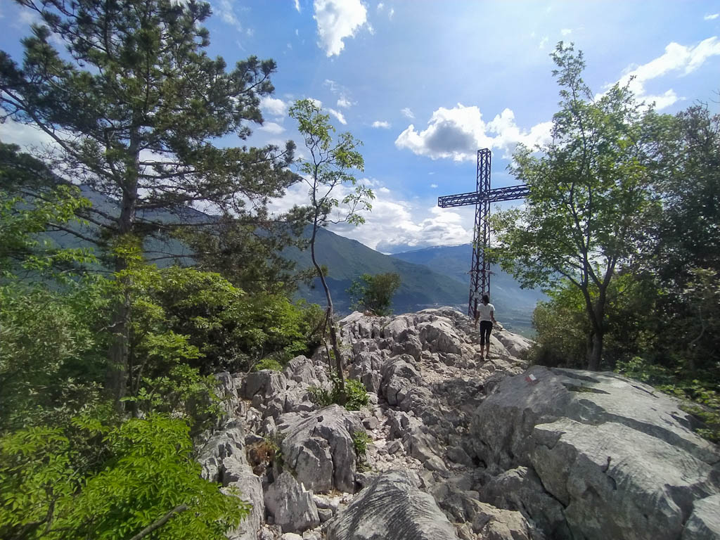 Per arrivare in questo incredibile punto è necessario arrivare alla chiesetta di Laghel. La Val di Laghel, appena sopra Arco, è un vero paradiso di tranquillità, immersa tra ulivi, boschi e prati. Dalla chiesa di Santa Maria parte il Sentiero dei Lecci, che in circa 30 minuti porta alla Croce del Colodri ed alla vicina Madonnina. Lassù potrete anche trovare le capre selvatiche, oltre (cosa ve lo diciamo a fare?!?) ad avere una vista super su Arco, Riva e sul Lago di Garda. Il sentiero non è fattibile con passeggino e richiede sorveglianza diretta sui bambini in alcuni passaggi più scivolosi o esposti.