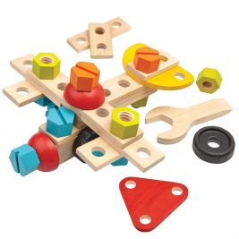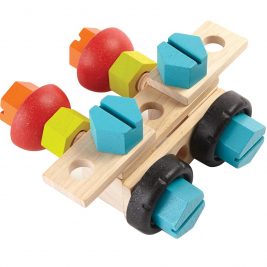 - Set Costruzioni di legno di Plan Toys – Con questo gioco voliamo direttamente in Thailandia, con un’azienda che progetta e produce giocattoli da più di 30 anni e che ha l’obiettivo di migliorare lo sviluppo del bambino, oltre che quello di tutelare l’ambiente in cui viviamo. Plan Toys si assicura di utilizzare sempre le migliori risorse naturali e si impegna per avere sempre un processo di produzione che genera solamente il minimo dei rifiuti possibili. Gli scarti del legno provenienti dal processo di produzione vengono utilizzati per alimentare il generatore di biomassa dal quale si ricava energia elettrica per l’azienda e per i villaggi locali limitrofi all’azienda. Plan Toys ha un team di progettisti internazionali che lavora meticolosamente ad ogni possibile dettaglio per fare in modo da un lato che i bambini abbiano giocattoli di qualità e dall’altro che essi riescano a crescere in armonia con il nostro mondo. Da oltre 20 anni Plan Toys segue un programma di riforestazione: ogni volta che viene tagliato un albero per realizzare i giocattoli ne viene piantato un altro nella piantagione aziendale. Ad oggi sono 52.120 gli alberi che sono stati ripiantati e restituiti così a madre natura. Il Set costruzioni di legno è un gioco composto da 40 pezzi da comporre a piacere per dar vita alle forme più diverse. Il set è dotato di viti, bulloni, barrette e chiave inglese e cacciavite 2-in-1. Questo gioco è utile a sviluppare il coordinamento occhio-mano, stimola l’immaginazione e la fantasia. Favorisce lo sviluppo delle capacità di logica e di problem-solving. Adatto a bambini dai 3 anni in poi.