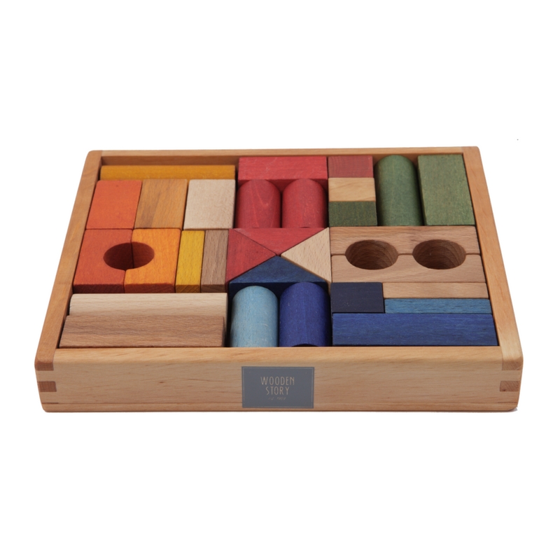 - Blocchi Arcobaleno da 30 pz e 54 pz di Wooden Story. Se quella di Melissa e Doug è una storia d’amore questa di Kidsonthetree con Wooden Story è di un amore a prima vista. Wooden Story è un produttore polacco che realizza giocattoli tradizionali in legno da tre generazioni. Tutti i giocattoli sono ideati e prodotti in Polonia, nelle Beskidy Mountains. La cosa che più piace di questo brand è la particolarità con cui sono curati e studiati in ogni minimo dettaglio, a partire dal packaging: la maggior parte dei giocattoli, infatti, sono venduti all’interno di una elegante scatola di cartone che da sola rappresenta un elemento che può essere poi riutilizzato.