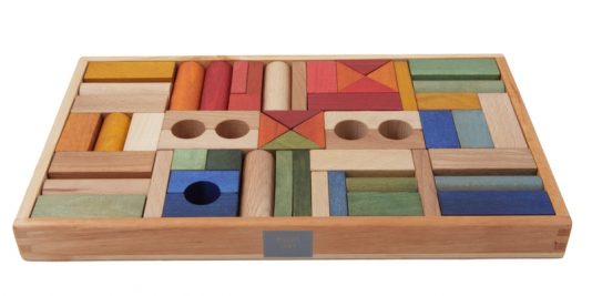 Il legno è rigorosamente certificato FSC per la realizzazione dei giochi, la lavorazione viene fatta con cera d’api e olii botanici e i coloranti sono naturali, eco-certificati. I Blocchi Arcobaleno da 30 pz o 54 pz sono un gioco molto tradizionale che lasciano ampio spazio alla fantasia e alla creatività dei bambini per inventare qualsiasi tipo di gioco. I Blocchi Arcobaleno da 30 pz e 54 pz sono adatti a bambini dai 3 anni in poi.