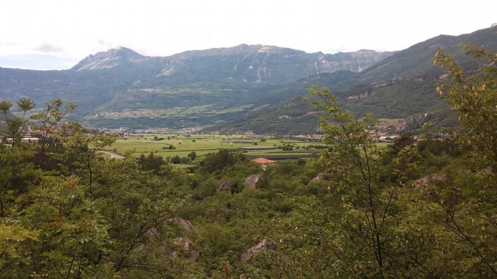 Approfittando di una bella giornata di sole abbiamo lasciato la macchina nel parcheggio del castello e siamo saliti verso l’entrata principale, che poi è anche l’inizio di una bella e semplice passeggiata nel bosco. Ci sarebbe piaciuto andare verso Castel Beseno ma il sentiero era purtroppo chiuso al traffico a causa del fondo dissestato (da parecchi mesi in realtà a vedere la delibera, quindi confidiamo lo sistemino al più presto) quindi abbiamo preso quello che portava a Volano.