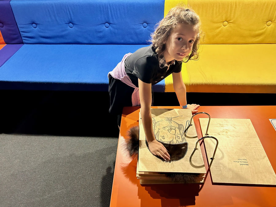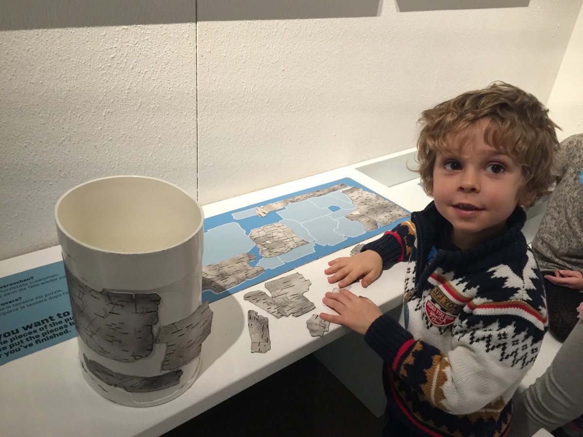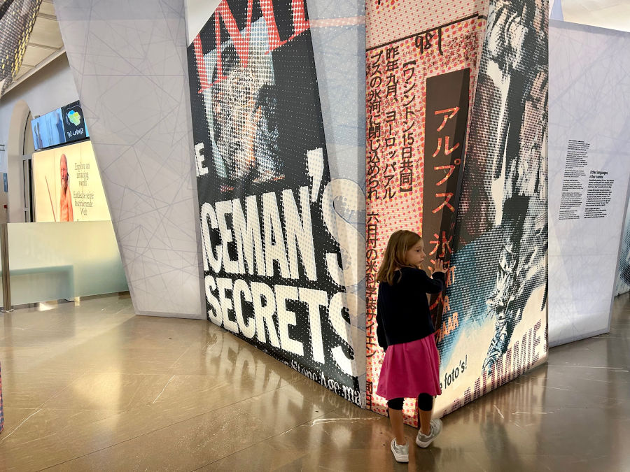 Nel resto del piano si possono ammirare i suoi vestiti e i vari utensili, così come mettere la mano in una piccola cella frigorifera che riproduce la temperatura in cui viene conservata la mummia. E poi c’è uno spazio dove i bambini possono fermarsi e provare i “vestiti” di Ötzi…