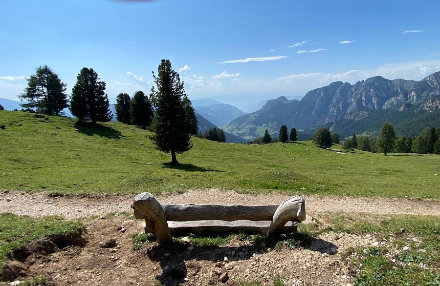 Lassù si dimentica la fatica, e poi volendo ecco una panchina con una vista mozzafiato e una fontana dove si può fare una pausa.