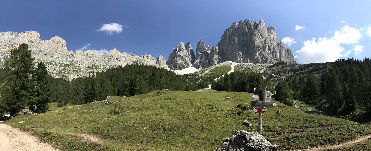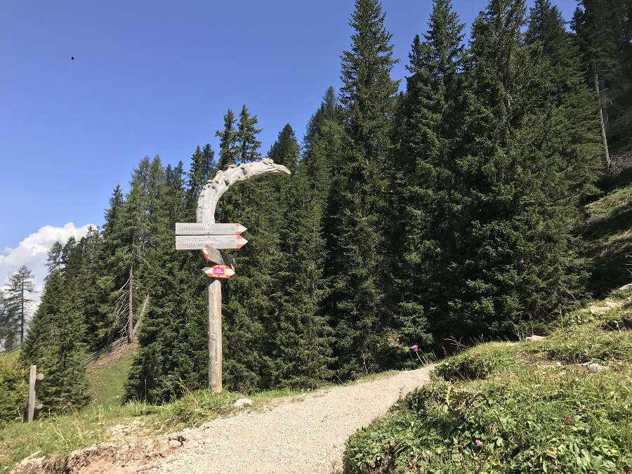 Abbiamo lasciato la macchina al parcheggio di passo Nigra (quasi 1700 metri), che si raggiunge dal passo di Costalunga in direzione Tires. Seguendo la segnaletica si cammina per circa mezz’ora su comoda strada forestale,