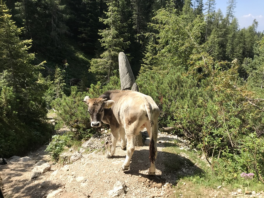 …dopo un po’ ecco infatti spuntare due grandi funghi di legno e noi siamo stati fortunati perchè abbiamo incontrato anche un simpatico vitellino 🙂 .