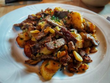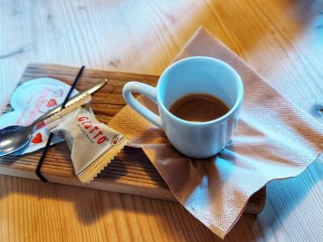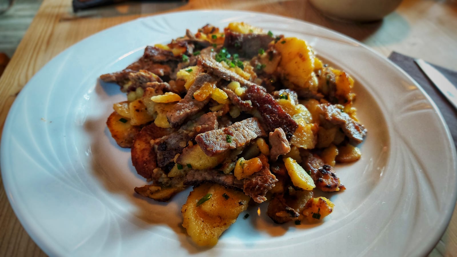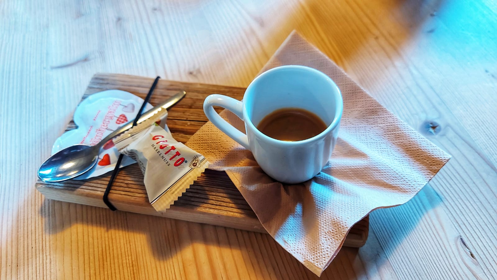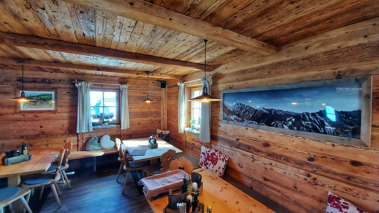 La malga, completamente in legno, è molto caratteristica e curata in ogni minimo dettaglio sia all’esterno che all’interno, dove la classica atmosfera altoatesina la fa da padrona tra centri tavola in legno, cuscini di feltro, copertine e quel calore inconfondibile delle tipiche baite di montagna.