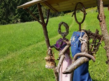 Qui si trova il bivio con il sentiero numero 1 che prosegue in discesa sulla destra. Quando avrete attraversato il torrente sul fondo della valletta vi troverete al punto più basso del percorso. Ora non vi resta che salire! Da qui in poi calcolate una buona ora di salita a tratti anche ripida fino ai Masi Urban. Non perdetevi d’animo! L’arrivo al paese di Senale sicuramente vi ripagherà della fatica. Se volete accorciare un pochino l’itinerario oppure volete fermarvi a pranzo qualche centinaio di metri prima di arrivare in paese noi vi consigliamo senza dubbio una sosta all’agriturismo Buschenschank zum Weiss’n Sepp che troverete lungo strada. Cibo ottimo, consueta ospitalità altoatesina e, per la gioia dei più piccoli, anche tanti animali da cortile nei dintorni del maso!
