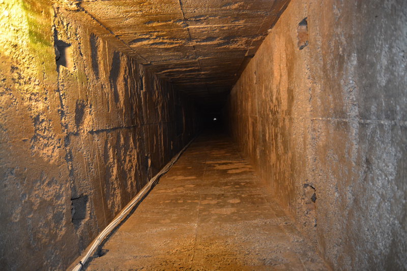 Finite le foto, i racconti affascinanti sul perchè e sul come è stato costruito, si entra davvero nel cuore della montagna: un corridoio di 200 metri con le pareti di malta fine originali dell’epoca, qualche luce e tanto silenzio proiettano tutti in una dimensione parallela, avvolgente e strana. Non consigliato a chi soffre di claustrofobia, consigliato a chi vuol provare l’emozione di diventare un soldato per un giorno, ma anche un esploratore. L’umidità e il buio, spezzato dalla debole illuminazione e dalle nostre torce non può che zittire tutti. Incredibili, c’è da dire, le capacità umane, sopratutto pensando all’era in cui quel tunnel è stato costruito e alla mancanza di semplificazioni e di mezzi che esistono oggi.