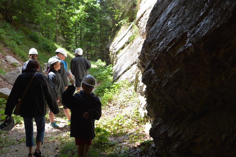 Finito il tunnel si arriva in un ampio androne, la guida ci fa vedere e toccare i punti della roccia a vivo in cui si può capire dove le zolle si sono attaccate: sotto le dita una melma fredda, testimone della grandezza della natura.
