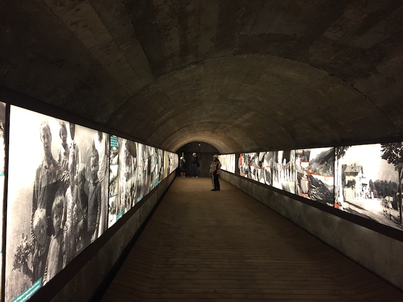 Le emozioni non sono finite: si supera la mostra e si cominciano a capire i veri motivi, fino a quel momento forse un po’ sottintesi, per cui il bunker è stato costruito: attraversando una parte di tunnel completamente buio, si raggiungono le prime postazioni per le mitragliatrici e si vede un po’ di luce oltre che, ovvio ma non quando si è dentro, l’altro versante della montagna e un panorama totalmente diverso.