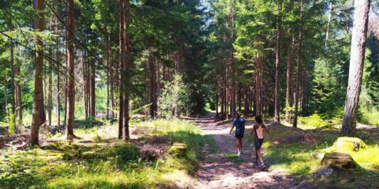 In giornate come queste, quando il caldo si fa sentire anche in quota, non c’è nulla di meglio che rifugiarsi al fresco, riparati dal sole sotto i rami dei larici! Il tratto che arriva a Malga Salanzada è percorribile anche con il passeggino, preferibilmente da trekking (non adatto ai passeggini invece il secondo tratto della passeggiata, ma volendo è possibile arrivare a valle completando il percorso sulla strada asfaltata).