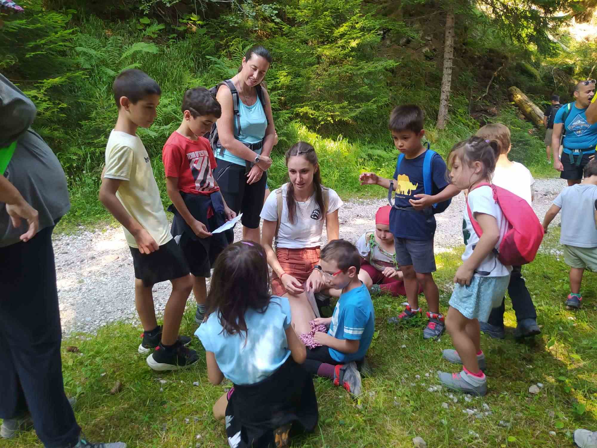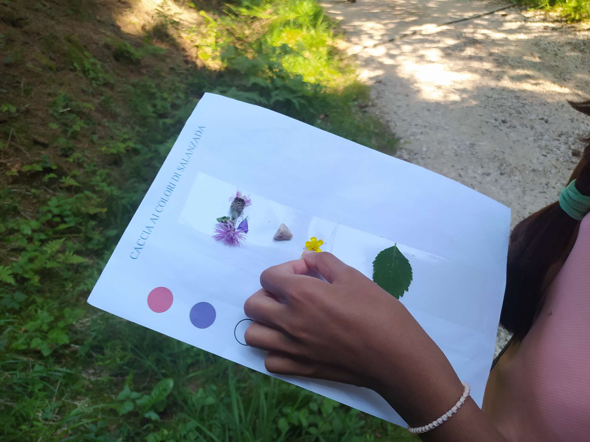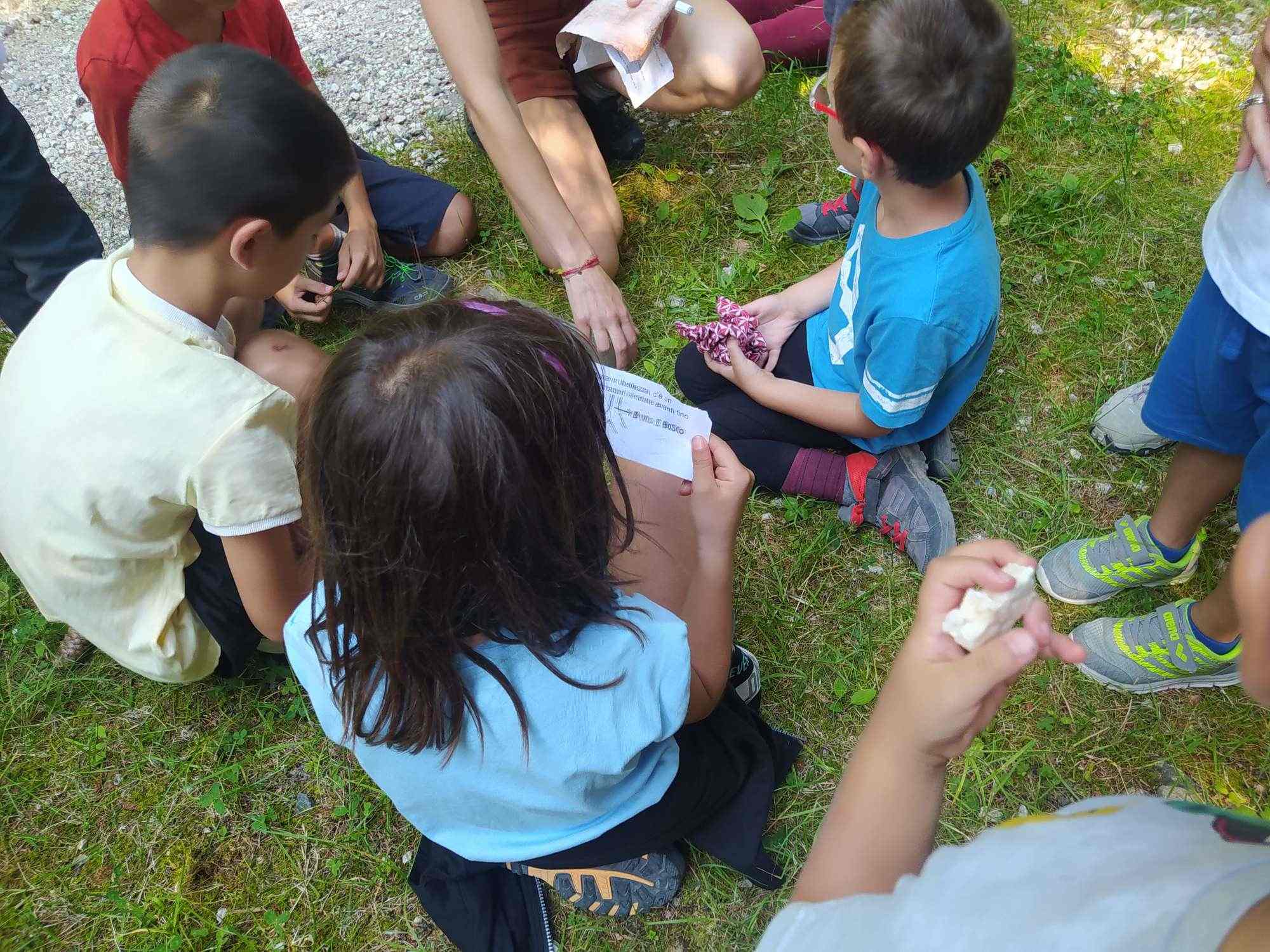 Per rendere l’escursione più appetibile ai bambini Marzia ha proposto una caccia al tesoro: seguendo gli indizi abilmente nascosti tra rami, sassi e foglie i bambini si sono guadagnati ad ogni tappa un pezzettino della leggenda di Salanzada.
