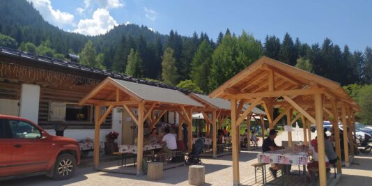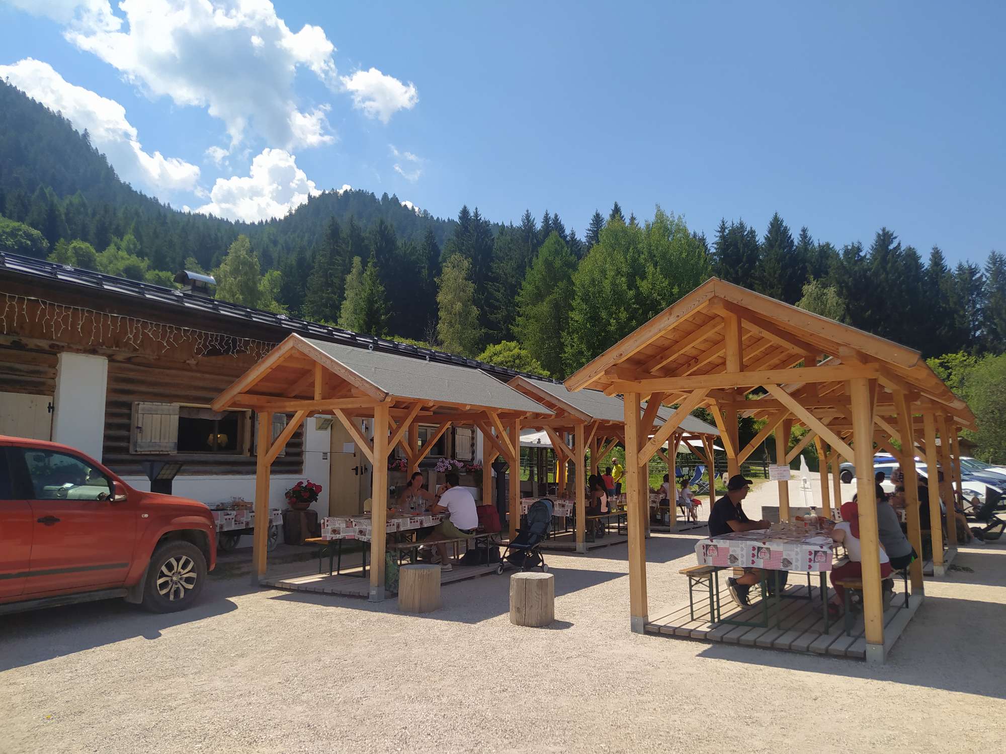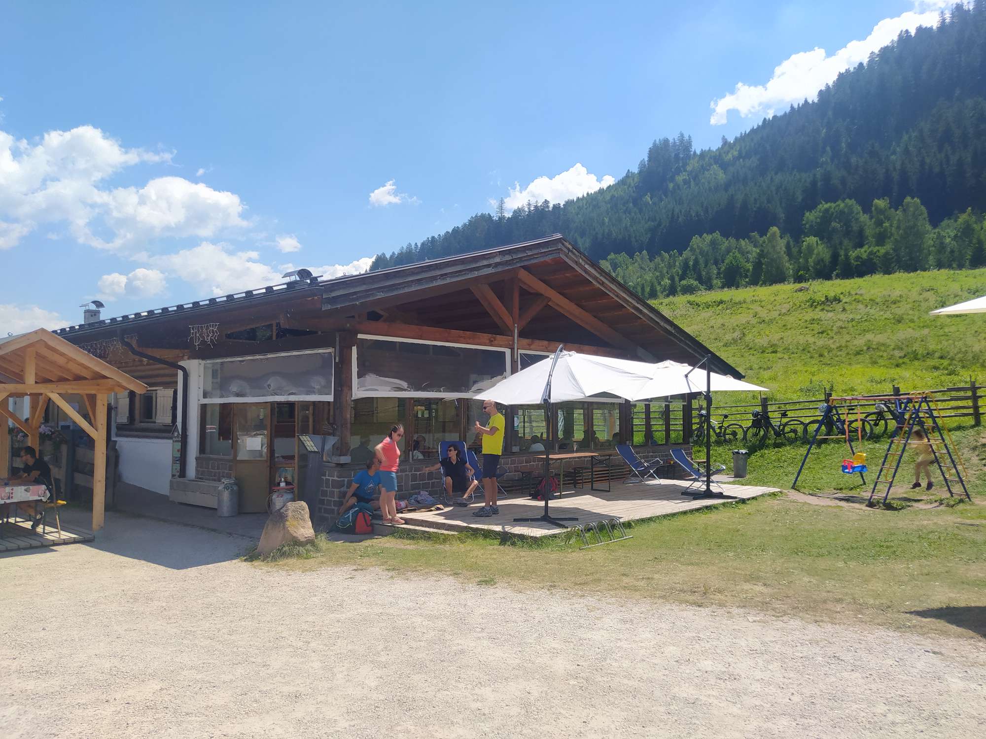 Sono presenti sia tavoli all’aperto (ogni tavolo si trova dentro una “casetta” di legno, una sorta di gazebo che garantisce l’ombra necessaria per potersi godere il pranzo), che in veranda, che all’interno e per essere sicuri di trovare posto è consigliata la prenotazione (tel. 0462 235480)
