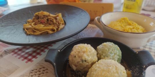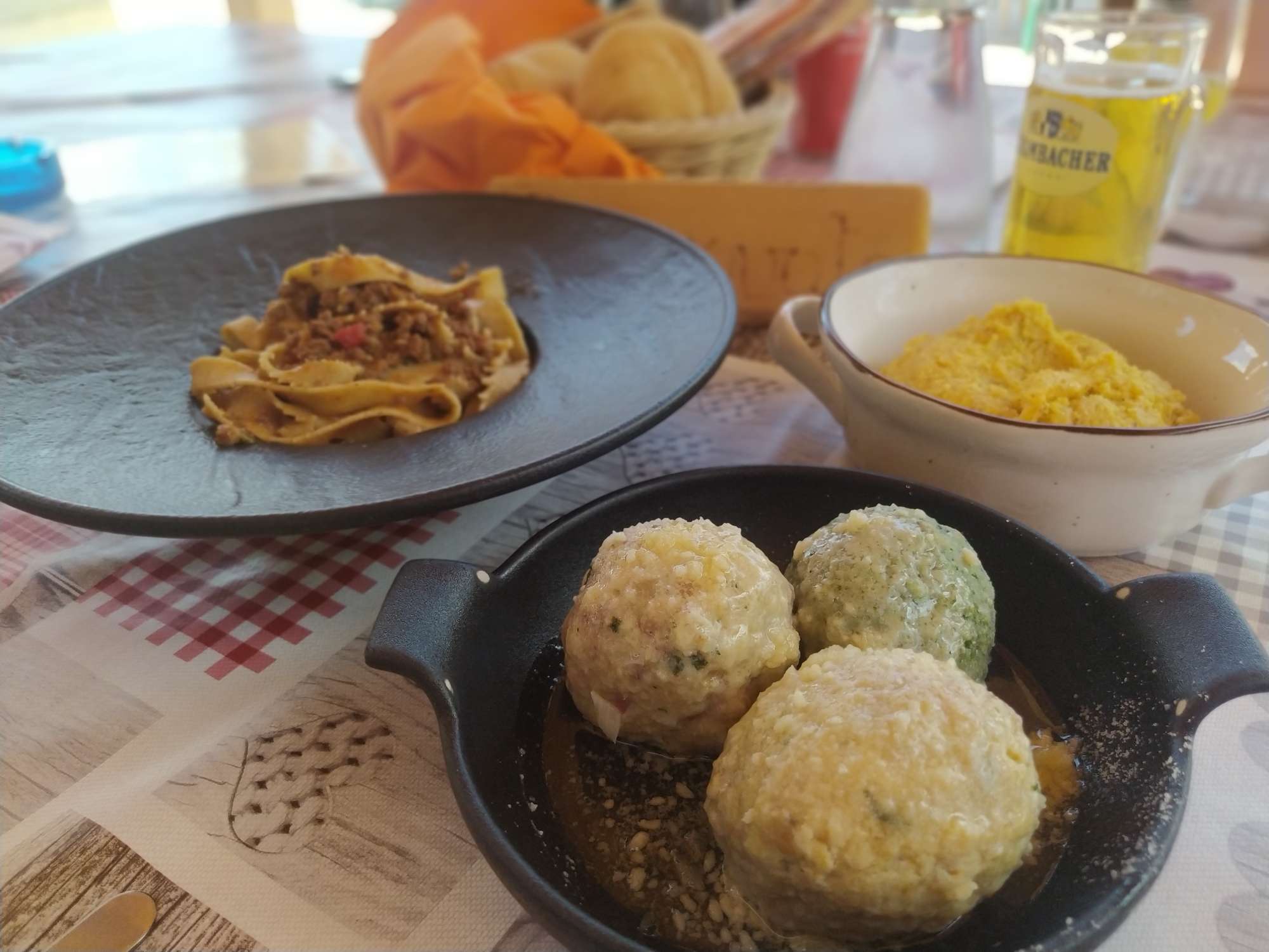 La cucina offre piatti della cucina tradizionale, serviti in abbondanti porzioni. Noi abbiamo provato le tagliatelle con il ragù fatto in casa, i canederli, gli spatzle e la polenta (ottima) con i funghi. Anche i dolci sono buonissimi: vi consigliamo la panna cotta ai frutti di bosco, davvero gustosa! Da segnalare infine l’assortimento di birre locali di Fiemme, sia alla spina che in bottiglia.