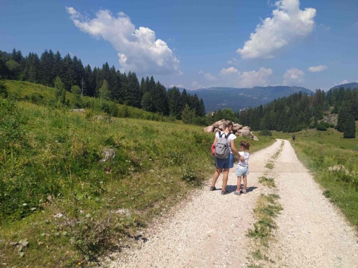 Quella che abbiamo provato oggi è una semplice passeggiata che conduce a Malga Salanzada. Da lì si può poi proseguire fino a valle compiendo un anello e tornando al punto di partenza. La nostra scelta è stata quella di fare la passeggiata in compagnia, approfittando di una delle esperienze promosse dall’APT Fiemme: un modo carino per far camminare anche i bimbi più restii, perché si sa che in compagnia il tempo passa più velocemente, si stringono nuove amicizie, si chiacchera e anche la fatica passa in secondo piano!