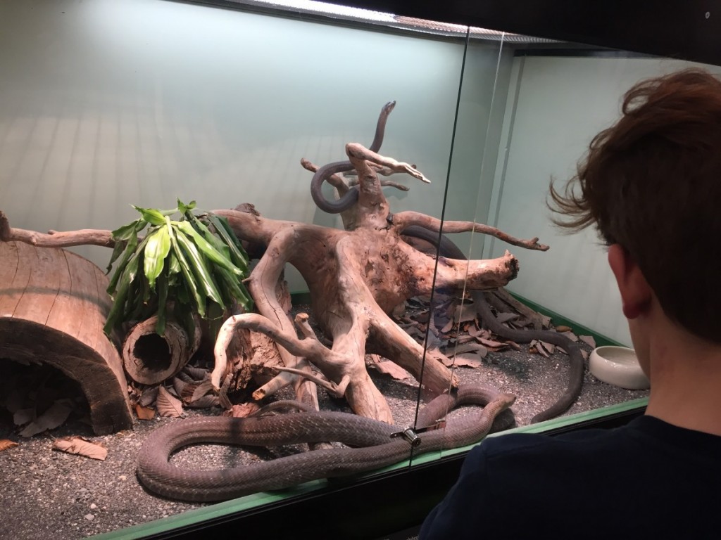 Ci sono stata martedì con Samuel e le sue compagne di classe Emma ed Arianna: sono rimasti colpiti da questi animali così particolari ed affascinanti ed hanno letto tutte le tabelle esplicative, da quelle che raffigurano le conseguenze di un morso per l’uomo alle caratteristiche generali dei serpenti. Sarà l’età (12 anni), ma si sono particolarmente soffermati sugli scheletri e le tecniche di riproduzione dei serpenti!