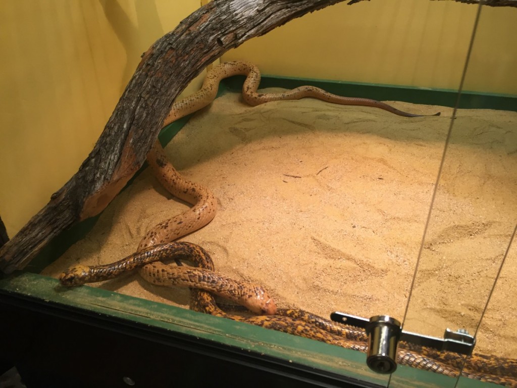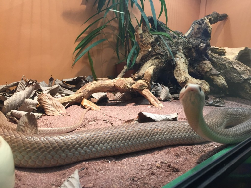 Abbiamo visto il taipan, il serpente più velenoso che si conosca: originario dell’Australia e della Nuova Guinea, arriva a tre metri e mezzo di lunghezza e vive cacciando roditori e volatili. E poi il cobra reale, che con i suoi cinque metri e mezzo è il serpente velenoso più lungo del mondo. Altro pezzo forte dell’esposizione è il mamba nero, considerato il re dei serpenti africani: sfiora i 4 metri e mezzo, si muove con una velocità che può raggiungere i 20 km/h e nella stagione degli amori è particolarmente aggressivo.