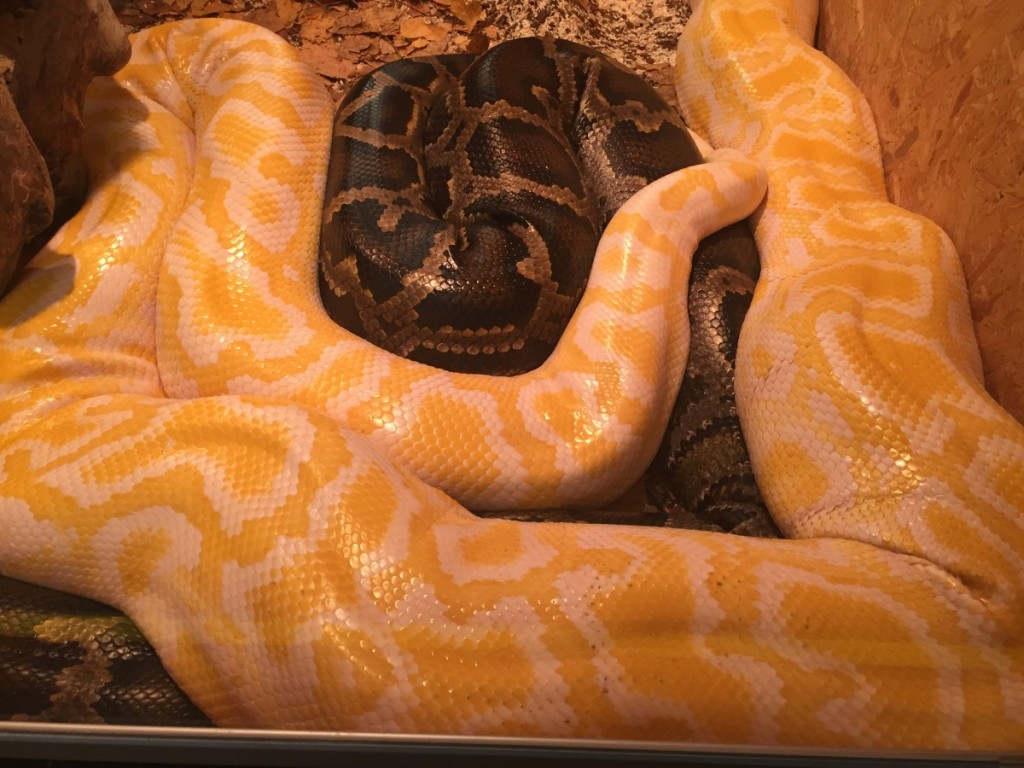 Tra i serpenti non velenosi ecco l’anaconda verde, (proveniente dal Sud America può superare gli otto metri di lunghezza e i 200 chili di peso) e il pitone reticolato: lungo fino a nove metri, vive nel Sud-est asiatico e si nutre di ratti, conigli, uccelli e anche giovani maiali. Mascotte della mostra, inoltre, è Willy, pitone albino di diciannove anni di età, lungo cinque metri e pesante 60 chili.